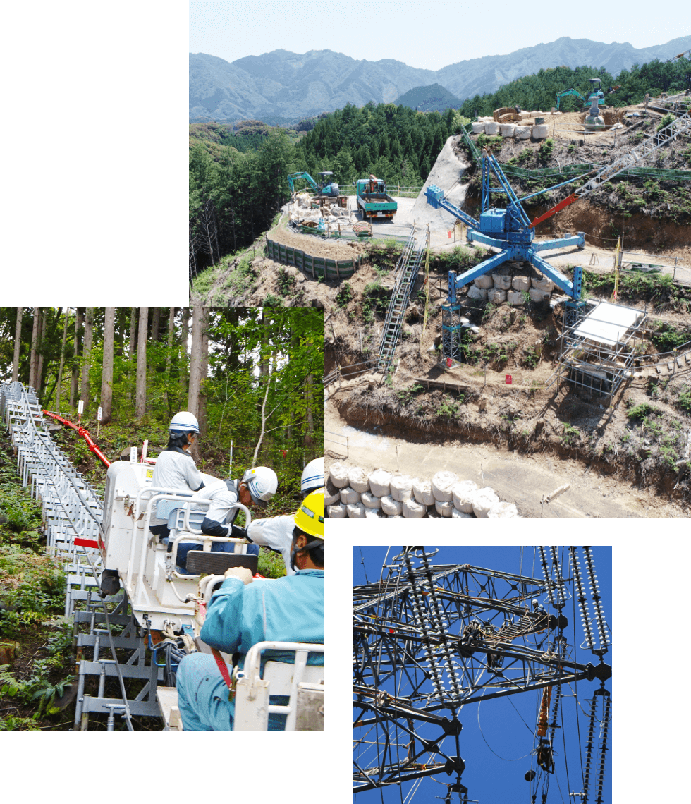 全国の送電線建設工事はもちろん、神奈川県内の送電線網のメンテナンス業務、公共建築物の屋内外電気設備の施工管理も一貫して行っています。
