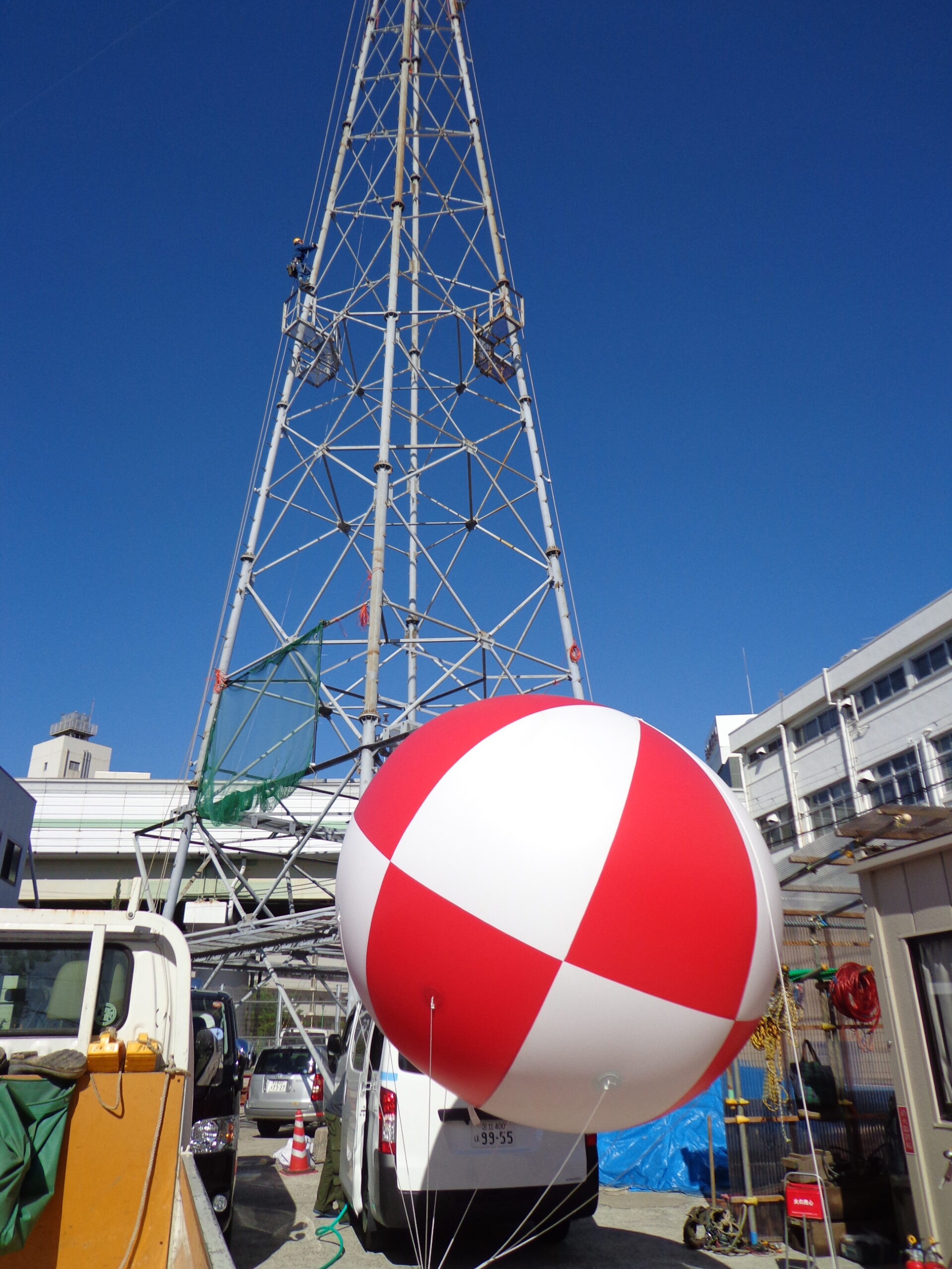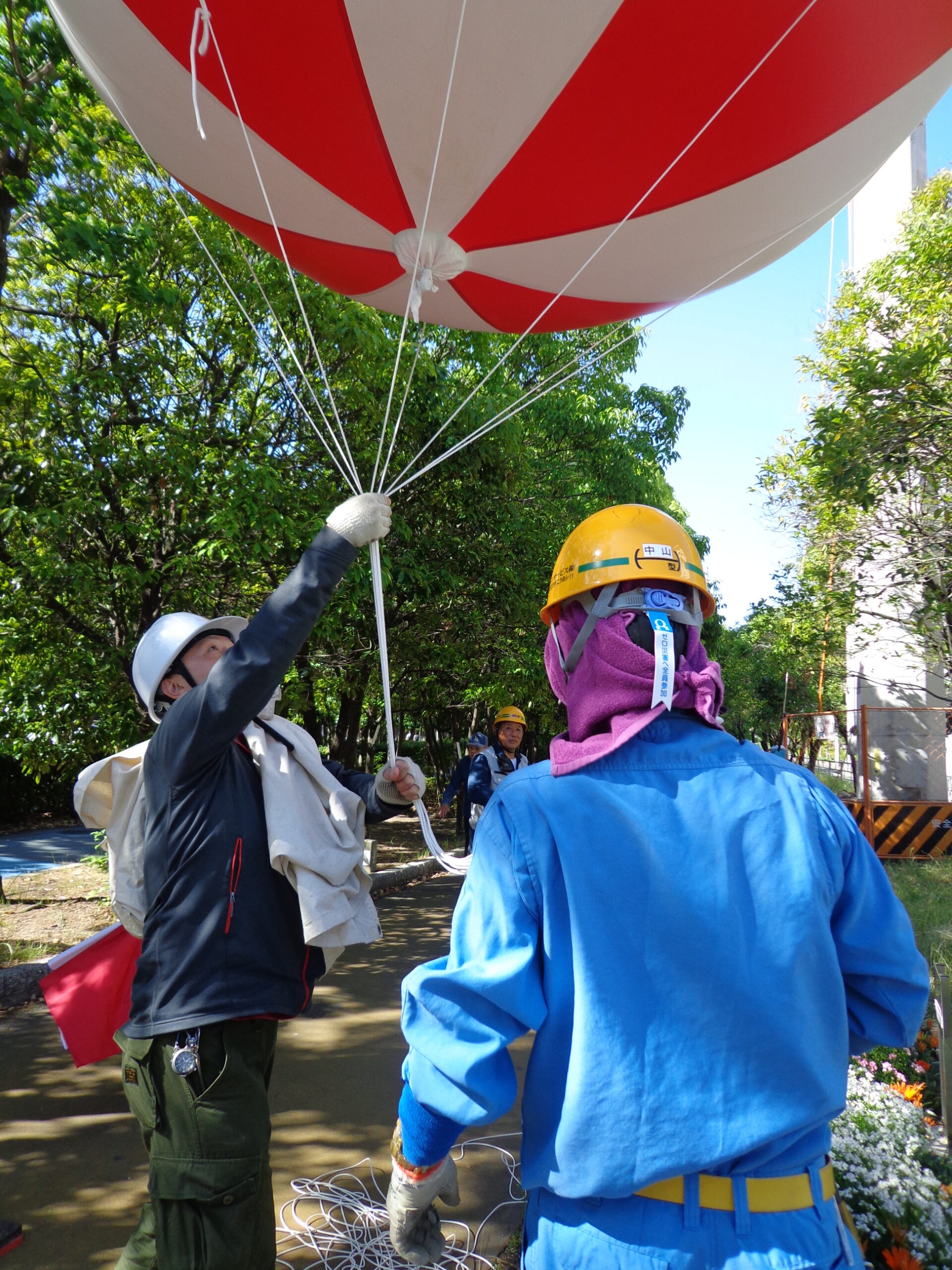 バルーン工法とは、最終ロープにヘリウムガスをつめたバルーンを結び付け、