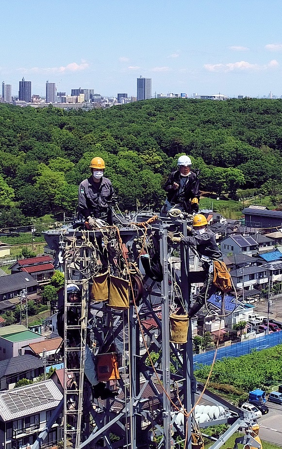東京都東村山市の現場で行われた鉄塔建替工事。